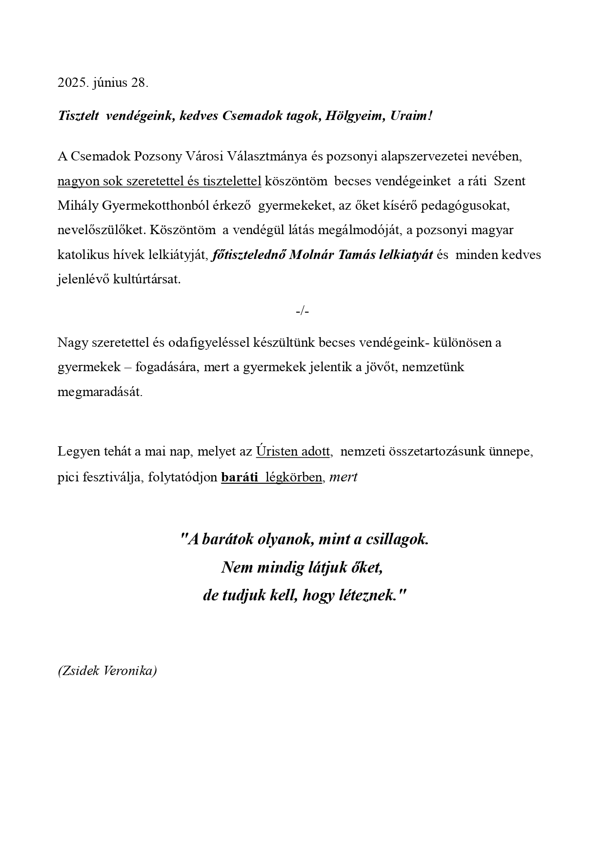 Ez az ünnepi alkalom lehetőséget ad, hogy újra találkozzunk, erősítsük közösségünket, és együtt merítsünk erőt a közös jövő reményéből.