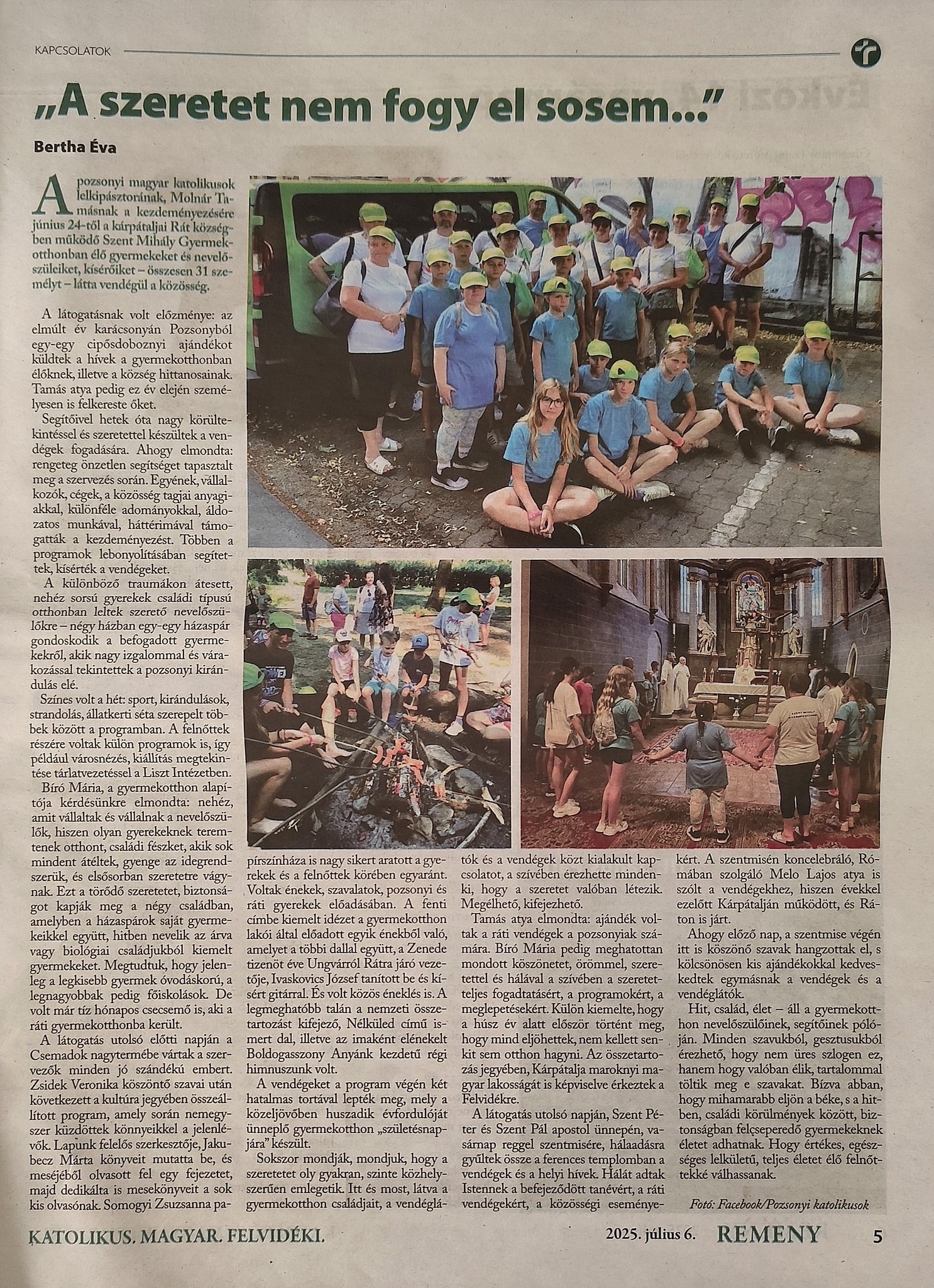 A rendszerváltás után a kerületi Fórum újság nevében magam is vittem segélyszállítmányt Borzsovára, részt vehettem egy iskolai tanévnyitón, ahol a kisgyerekek csodálatosan énekelték a Himnuszt és a Szózatot. Az intézményben sugárzott a hazaszeretet, a tanárok magyarság tudata, a gyerekek öröme és tudása a magyar nyelv és kultúra elsajátításában. Ilyen nehéz viszonyok között, ebben a közegben, ráadásul ma háborúba hajszoltan, de még él a magyar a hazától elcsatolt területein. Él, mert él a kultúrája, irodalmi és zenei hagyományai , melyre támaszkodva Isten Kárpátaljai küldötteiként végzik nemzetnevelő munkájukat nevelőik, tanáraik.