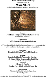 Átadásra került a XVI.kerületben, a Hittel a Nemzetért Alapítvány, a Kovász Egyesület és a Rákosszentmihályert Kulturális Egyesület által alapított Wass Albert emlékplakett. Az idei kitüntetett a kárpátaljai Credo együttes.