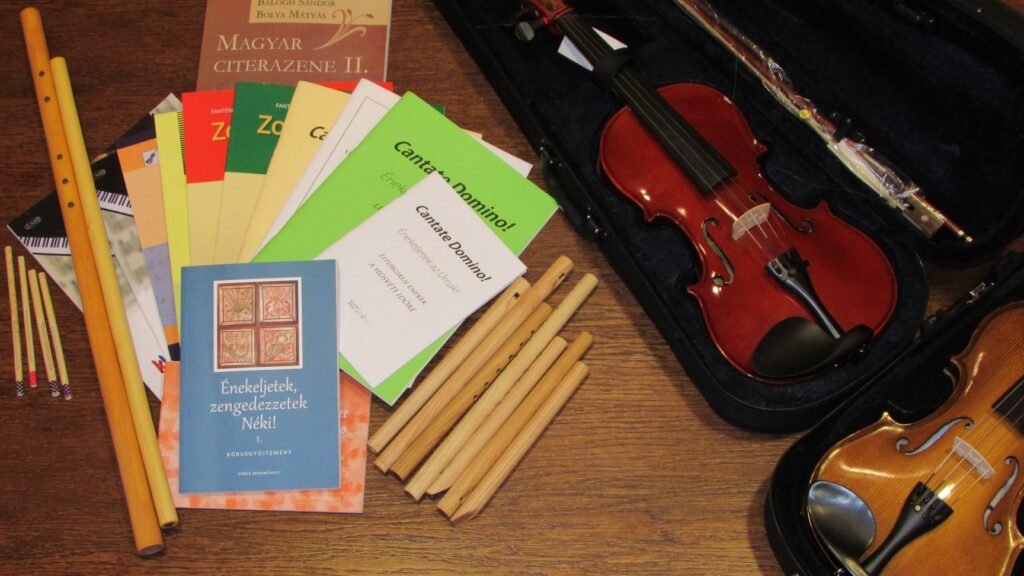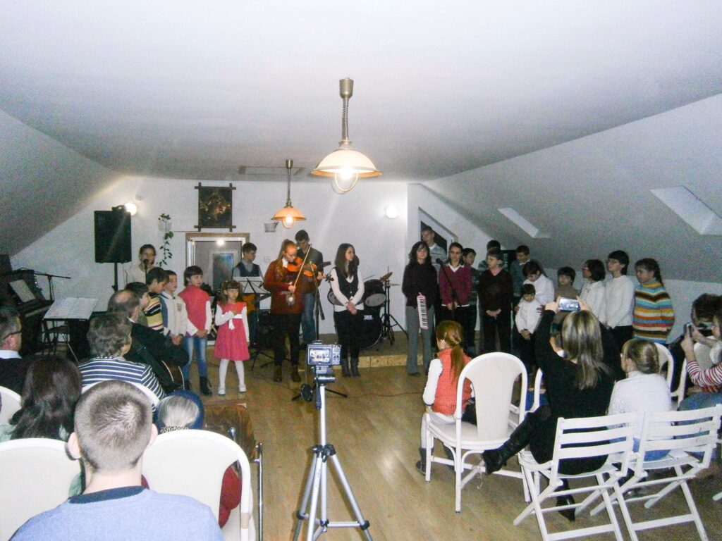 “Az ének és a zene fontos és kedvelt elfoglaltsága a gyerekeinknek. Néhányan már egy-két éve tanulnak hegedülni, és zeneelmélet órákra járnak. 2010. szeptembere óta pedig Ivaskovics József, zenész, zeneszerző foglalkozik a gyerekotthon összes gyerekével hetente egyszer. Ezek az ének és zeneórák lassanként a gyerekotthon önálló zeneiskolájává fejlődtek. Furulya, gitár, dob, együtt éneklés és közös fellépés. Mindezt nevezhetnénk akár zenés terápiának is. A szükséges hangszereket részben ajándékba, részben pedig a 2010-es karácsonyi, és más jótékonysági koncertek bevételeiből kapták.”